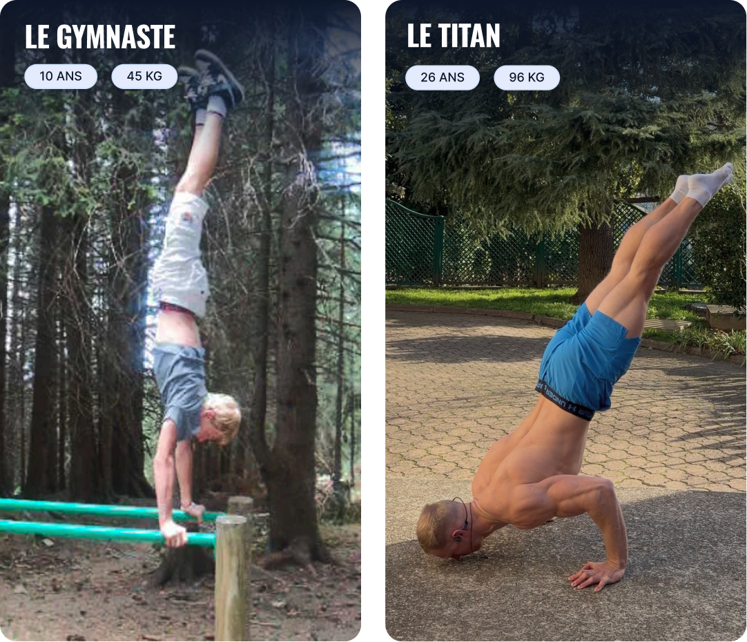 Le Handstand est mon quotidien depuis mes 4 ans. J’ai grandi la tête à l’envers avant de transformer mon corps par une préparation athlétique totale : musculation, Street Workout, sprints et endurance.
